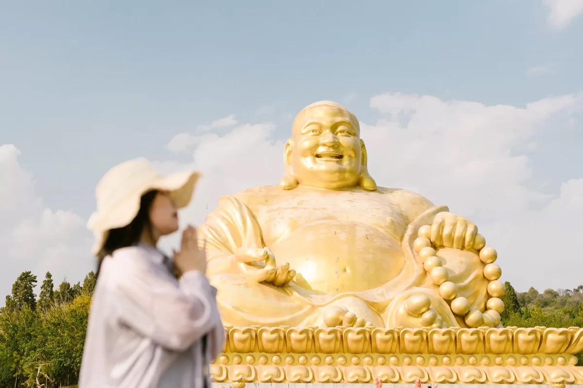 - Núi Cẩm Bình - Tượng Phật Di Lặc Với độ cao 19.99 mét, bức tượng phủ bóng xuống chúng sinh. Đây là tượng Phật Di Lặc bằng đồng ngồi lớn nhất thế giới, không ẩn mình trong chùa chiền, mà hòa làm một với núi non, thành phố và đường chân trời. Dáng vẻ viên mãn, tấm lòng rộng mở và nụ cười vĩnh hằng của Ngài diễn giải sống động trí tuệ phương Đông: "Bụng lớn dung chứa được, miệng mở liền cười.