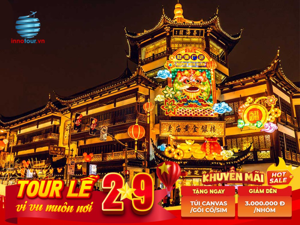 - Khởi hành đi Thượng Hải, tham quan bến Thượng Hải - Nằm bên dòng Hoàng Phố êm đềm, Thượng Hải mang vẻ đẹp nửa hiện đại nửa cổ kính của những công trình kiến trúc. Đến với thành phố Thượng Hải sầm uất người ta không thể không nhắc đến Bến Thượng Hải bởi sức hấp dẫn của nó đối với mỗi du khách khi có dịp đặt chân đến. Ngắm tháp truyền hình Minh Châu Phương Đông (không lên tháp) – một tháp truyền hình cao nhất Châu Á và đứng thứ ba trên thế giới.
