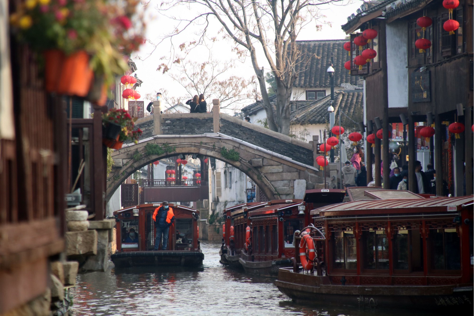 - Tiếp tục tham quan "phố cổ ngàn năm" Thất Lý Sơn Đường – được mệnh danh là "con phố số 1 ở Cô Tô" và là điểm thu hút khách du lịch nổi tiếng ở Tô Châu, đây là phố đi bộ có lịch sử gần 1200 năm với tổng chiều dài là 3829,6m. Dọc theo con phố là các cửa hàng nhỏ, nhà hàng và nhà ở, điểm chung là đều được xây dựng ven sông, thỉnh thoảng sẽ thấy rất nhiều tàu du lịch chở khách du lịch ra vào trên sông. Đó là một khung cảnh độc đáo ở vùng sông nước Giang Nam.